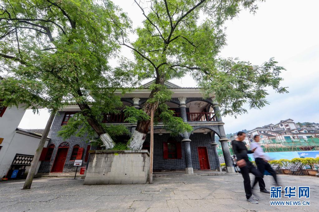 游客从遵义会议会址旁的刺槐树下经过(4月23日摄)。新华社记者 欧东衢 摄
