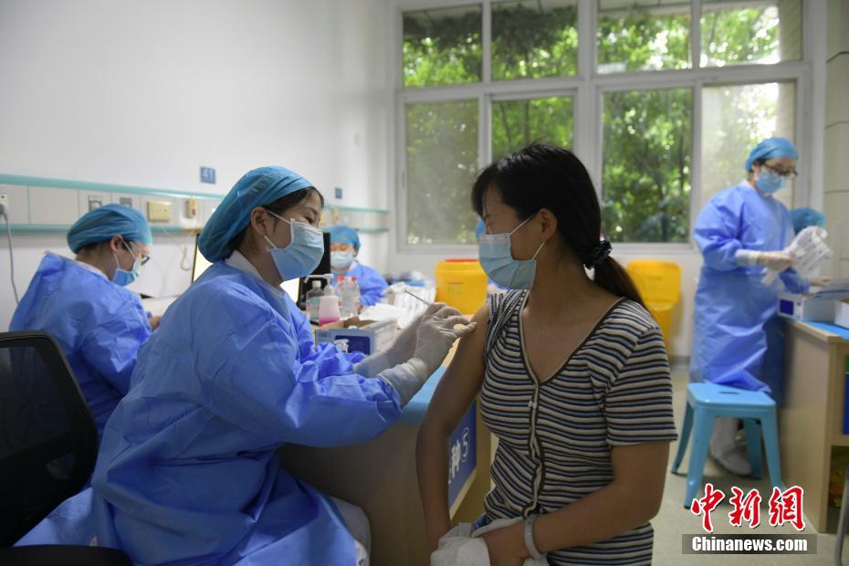 5月15日,市民在安徽医科大学第二附属医院方舱新冠病毒疫苗接种点接种疫苗。 中新社记者 张娅子 摄