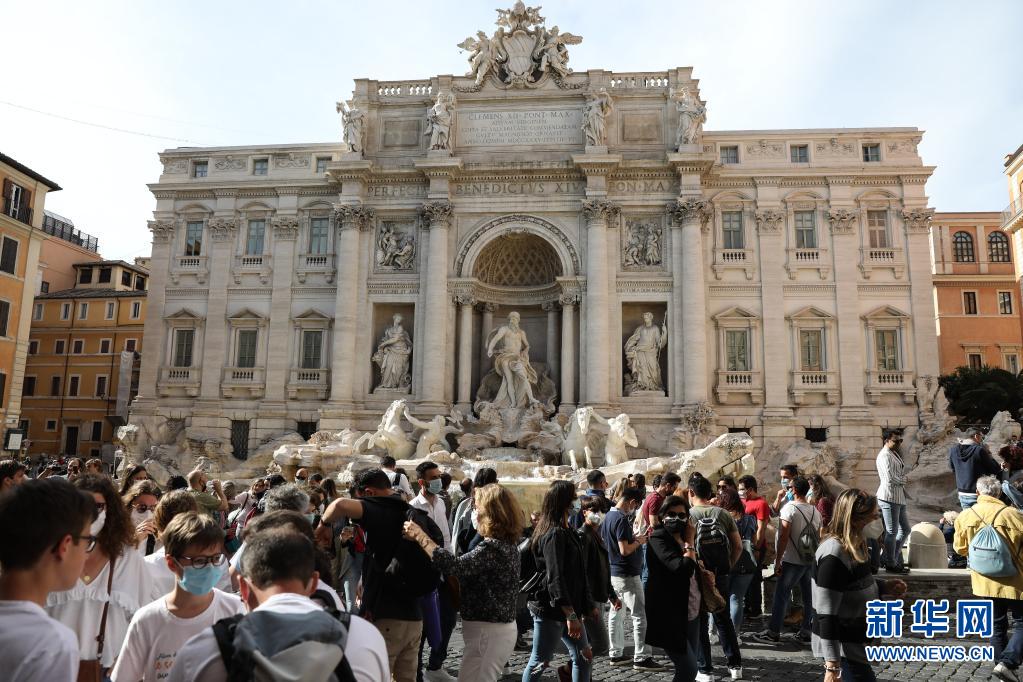 5月15日,游客在意大利首都罗马的许愿池前游览。
