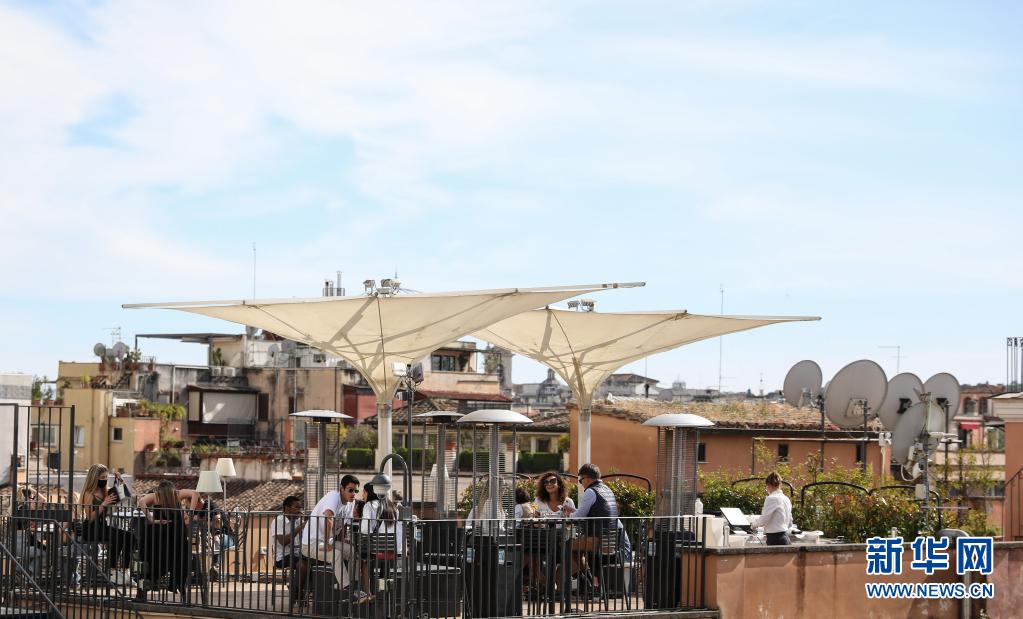 5月15日,人们在意大利首都罗马的一处餐厅用餐。