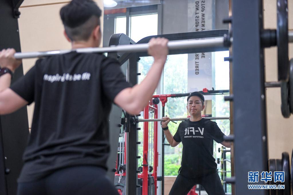 5月7日,何禹霏在健身房锻炼。