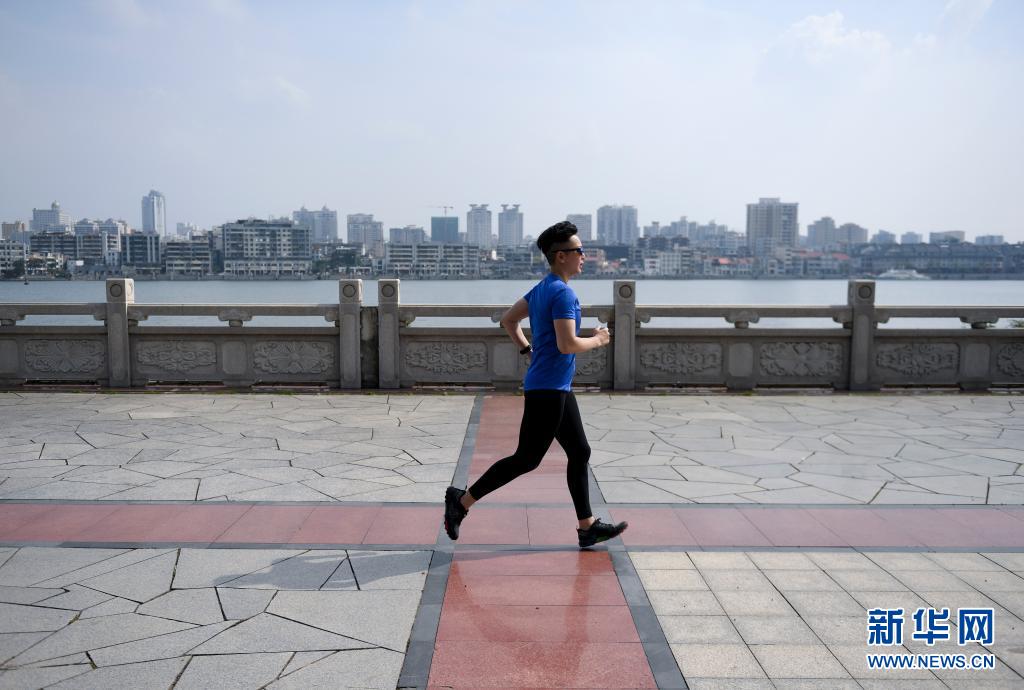 5月7日,何禹霏在惠州东江边跑步。