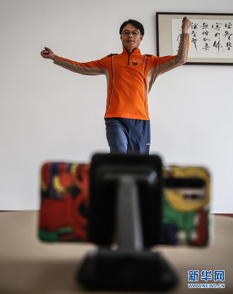 5月21日,鲅鱼圈区新城学校体育老师姜军在为学生录制教学视频。