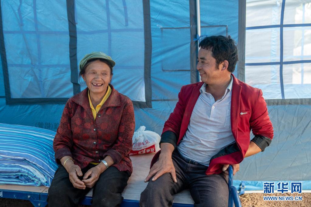5月22日,在云南省漾濞县秀岭村,受灾群众在帐篷里聊天。