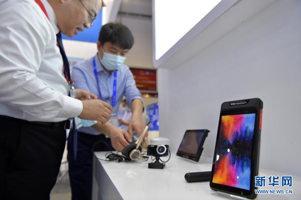 5月27日在博览会上拍摄的北斗三号短报文智能手持机暨整体解决系统。此手机业内号称“永不失联的手机”,可应用到救灾救援及无人区作业中。