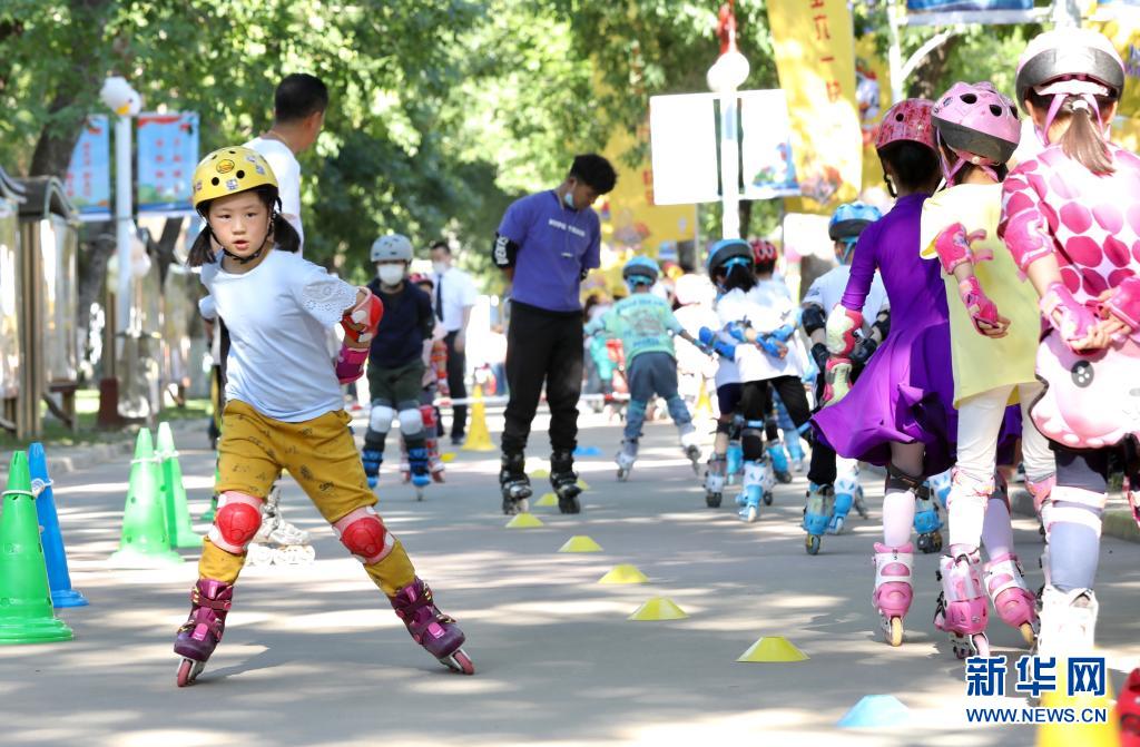 5月29日,小朋友在中国儿童中心的活动上体验轮滑运动。
