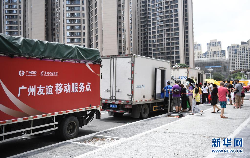 5月30日,市民在广钢新城广州友谊商店移动服务点购买生活用品。