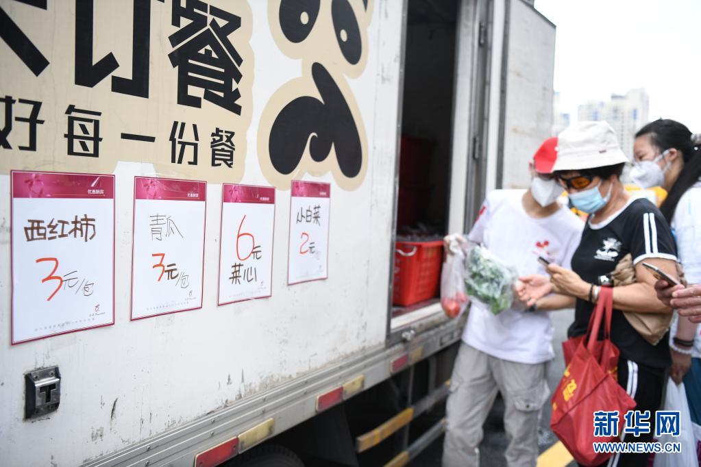 5月30日,市民在广钢新城广州友谊商店移动服务点购买蔬菜。