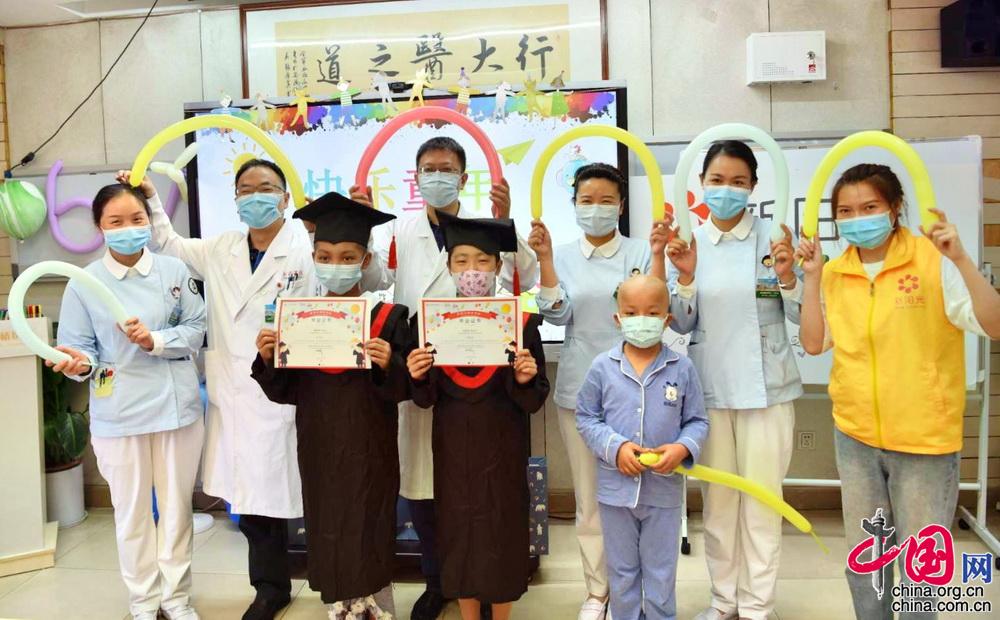 中国网讯(通讯员 曾理)“今天我毕业啦!”31日,在陆军军医大学新桥医院血液病医学中心“新阳光病房学校”举行的主题毕业典礼上,刚接过毕业证书的妮妮(化名)小朋友高兴地说到:“今天,我也能像我同学一样拿到毕业证了,把在病房学校学到的知识和快乐带回去与同学们分享!”