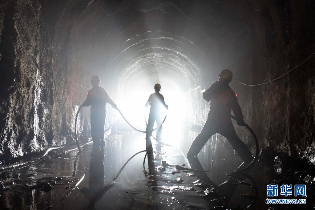 6月6日,建设者在岱海生态应急补水工程2号隧洞里作业。