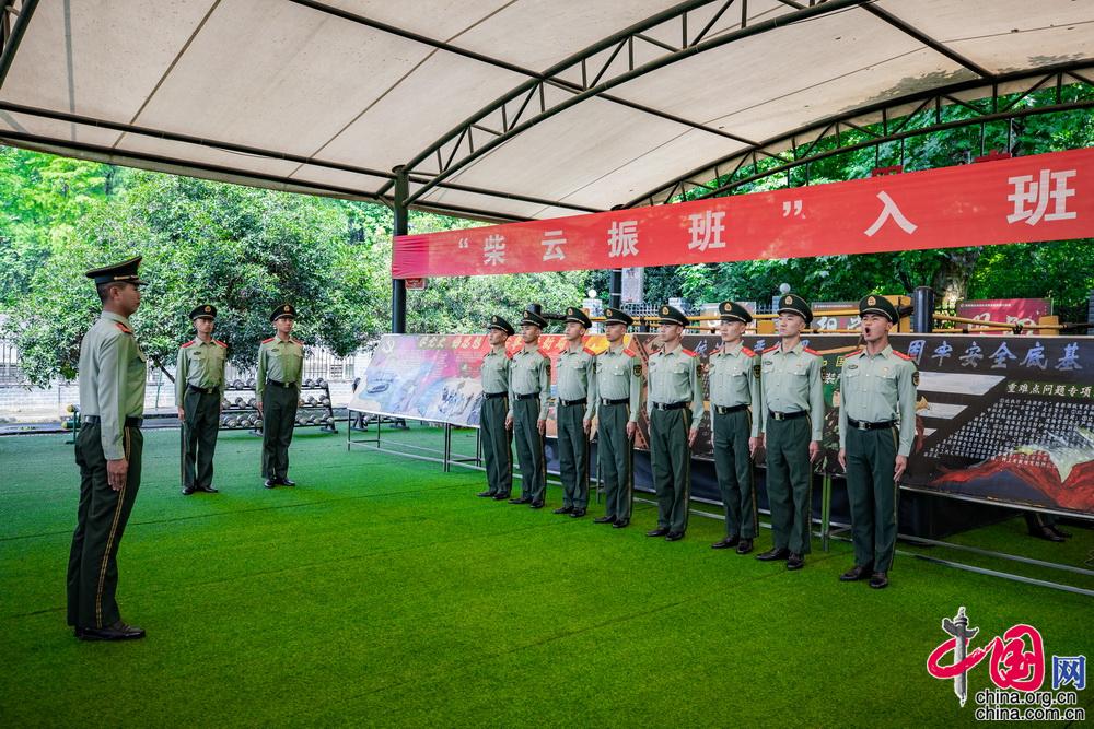 能够加入“柴云振”班是每个中队战士的愿望。每当“柴云振”班有老兵退伍离开时,中队战士都可以通过个人申请志愿加入“柴云振”班,经过考核遴选、组织研究,最终依靠综合成绩决定补入“柴云振”班的人选。图为中队举行“柴云振”班新战士入班仪式。中国网记者 郑亮摄