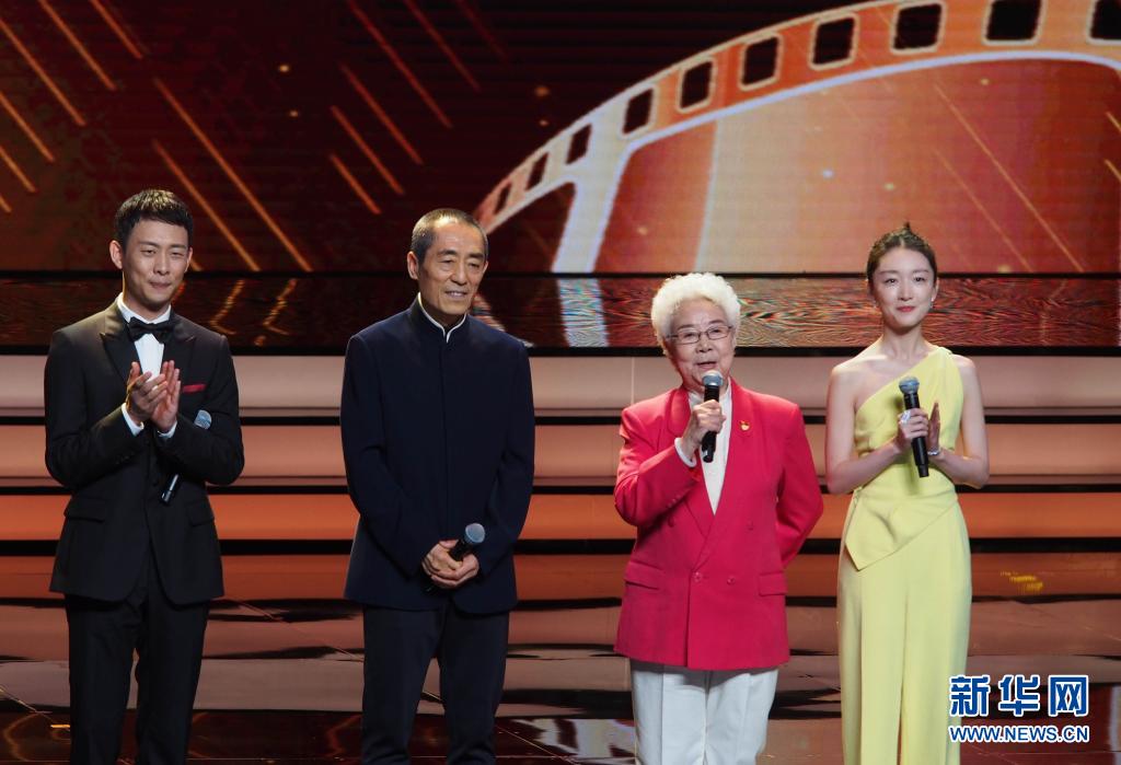 6月11日,第24届上海国际电影节金爵盛典在上海大剧院举行。这是演员田华(右二)、张译(左一)、周冬雨(右一)和导演张艺谋(左二)在现场分享他们的电影人生。