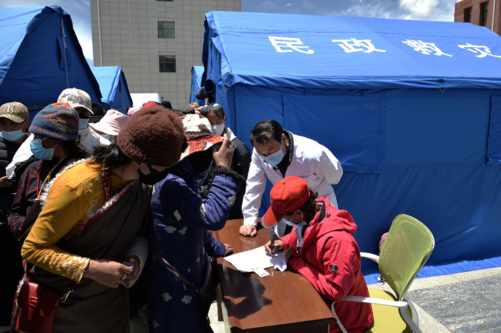 北京大学人民医院副院长王建六在玛多县地震灾区筛查现场(组委会供图)