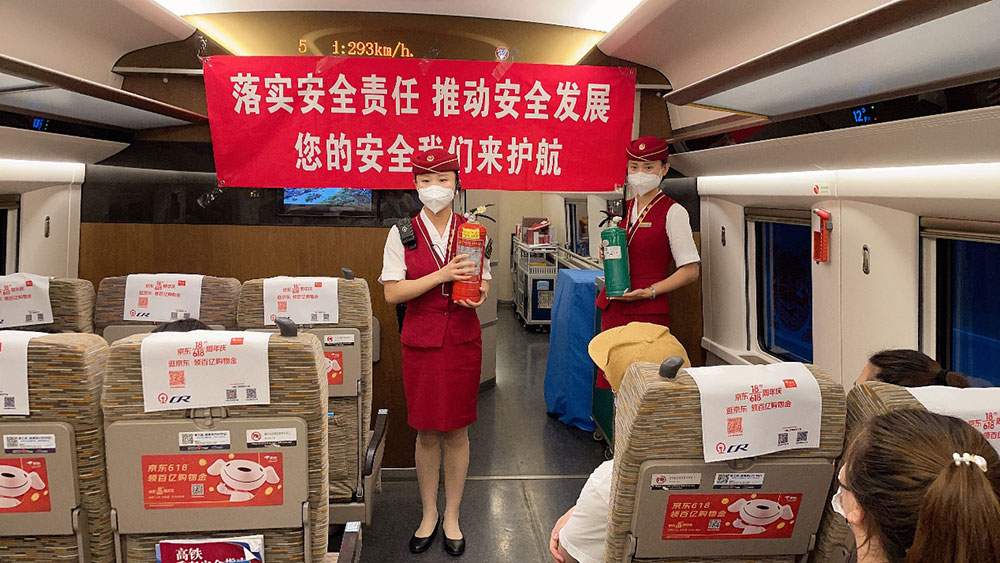 石家庄客运段值乘人员与旅客互动普及高铁安全知识