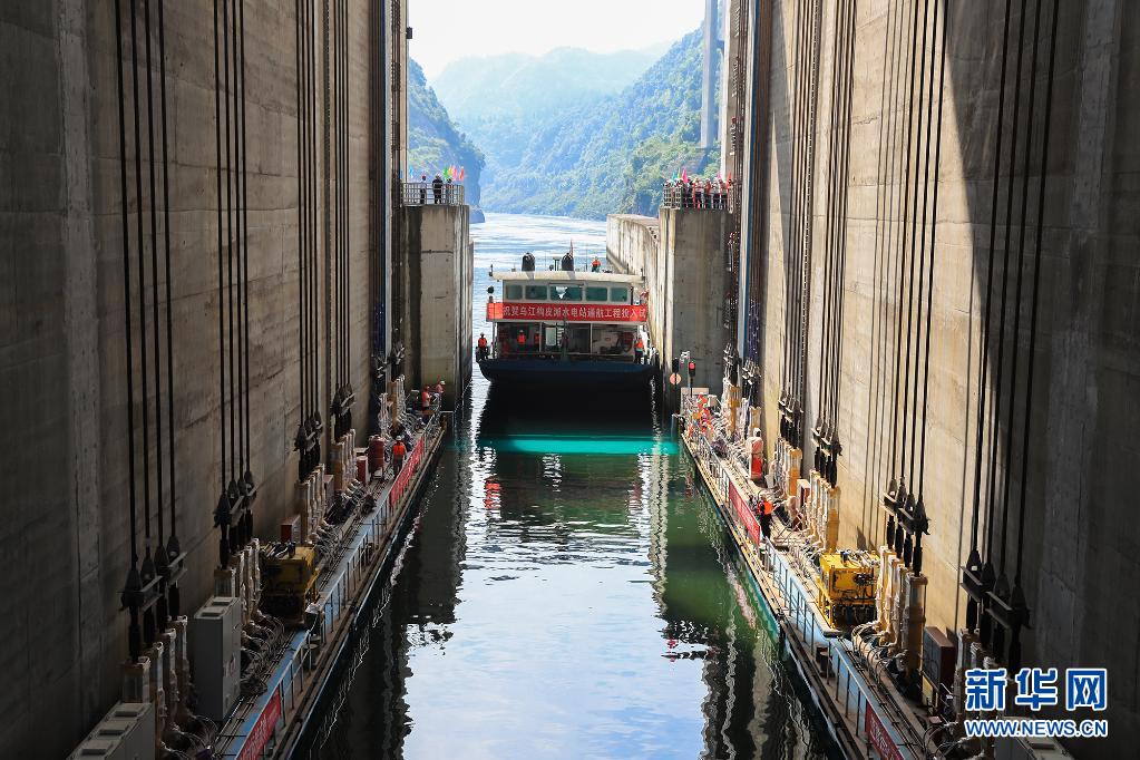 当日,位于贵州省遵义市余庆县境内的乌江构皮滩水电站通航工程开始试运行。构皮滩水电站通航工程线路总长2306米,由上下游引航道、三级垂直升船机和两级中间渠道组成。投入试运行后,500吨级船舶可从贵阳的开阳码头依次通过构皮滩、思林、沙沱、彭水,在重庆涪陵进入长江。