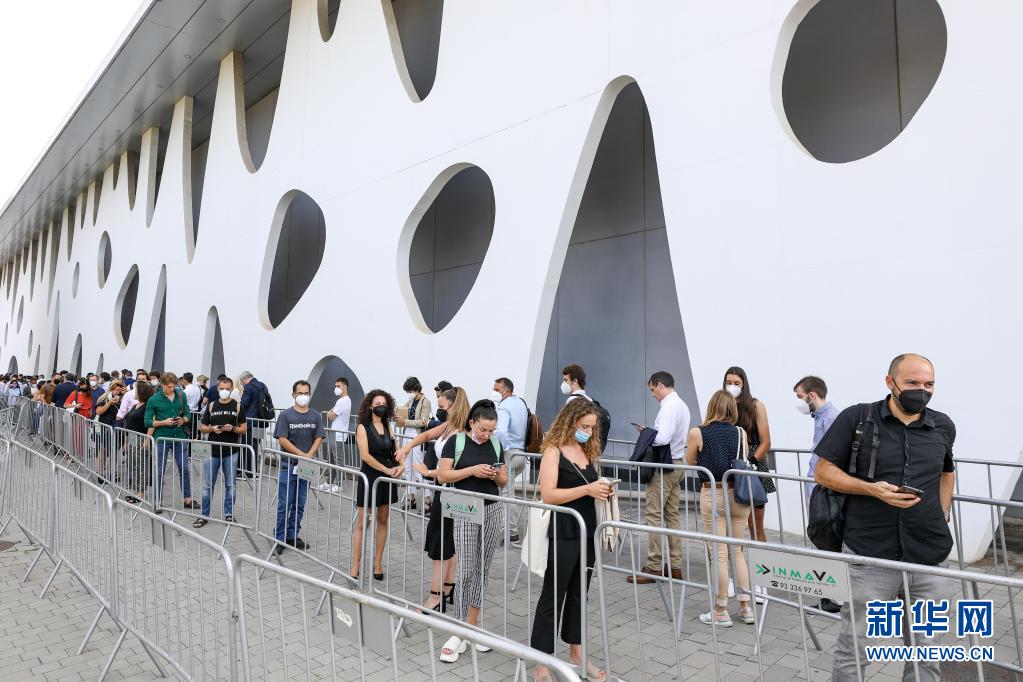 6月28日,在西班牙巴塞罗那,人们排队准备进入世界移动通信大会的新冠病毒检测中心。