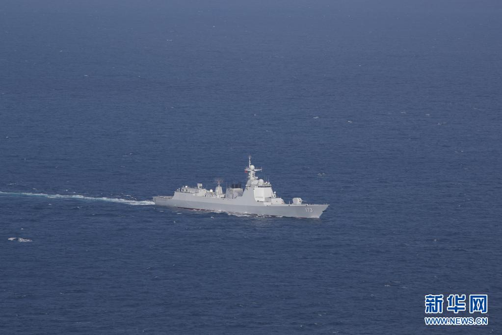 中国海军第37批护航编队长沙舰向预定海域航行(2月18日摄)。
