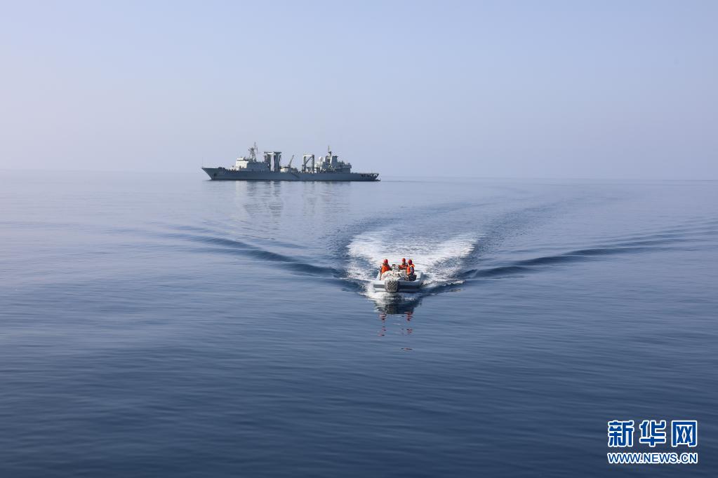 中国海军第37批护航编队组织海上航行补给,为舰艇连续执行护航任务提供可靠续航支持。这是小艇在进行物资转运(3月22日摄)。