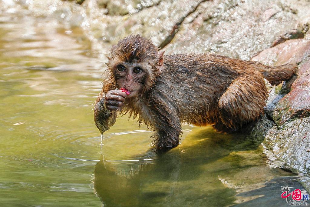 中国网7月14日讯 连日高温天气,郑州市动物园通过设置人工喷淋、增设空调、为动物提供冰块和水果等多种方式,帮助动物们消暑降温,清凉度夏。图为7月13日,郑州市动物园的猴子在吃水果。图片来源:何五昌/视觉中国