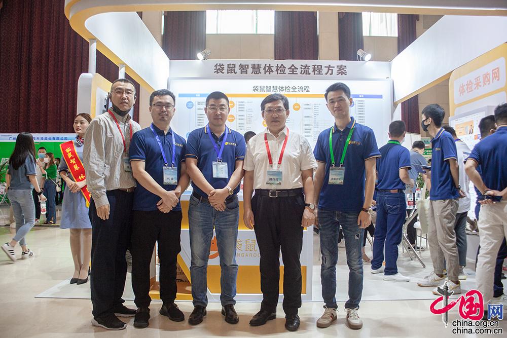参会嘉宾参观袋鼠健康展位并合影