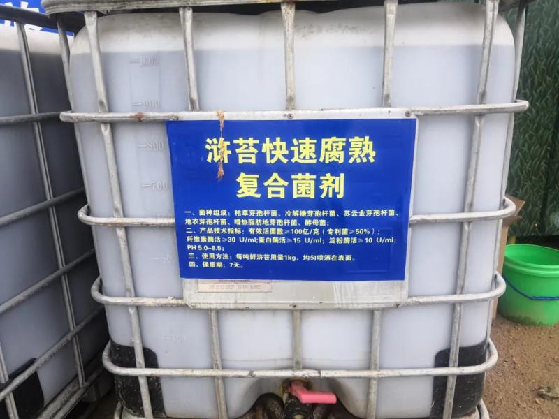 浒苔快速腐熟复合菌剂的菌种由枯草芽孢杆菌、冷解糖芽孢杆菌、苏云金芽孢杆菌、地衣芽孢杆菌、嗜热脂肪地芽孢杆菌和酵母菌组成。现场一位负责安全管理的负责人介绍,通过无人机喷洒,浒苔腐熟后,被送到远海投放。“往年打捞上来的浒苔在陆域都能做到无害化处理或资源化利用,今年因为量太大,大约只能满足1/3的量。我们和政府沟通后,对剩下的浒苔要通过工程船做无害化远海投放,这也是我们公司第一次通过这种方式处理浒苔。”