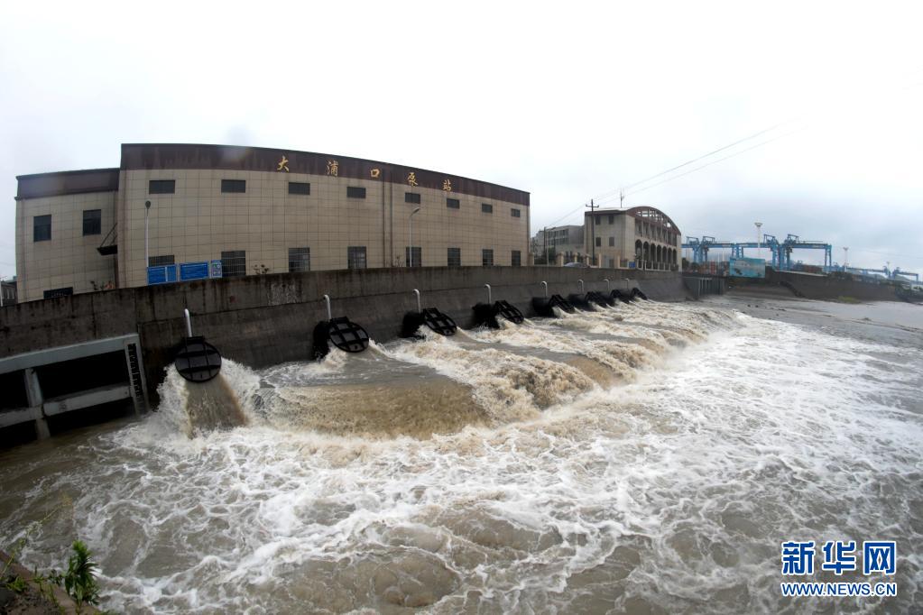 7月25日,舟山市定海区金塘岛大丰泵站强排系统全部开启进行应急强排,防止内涝发生。