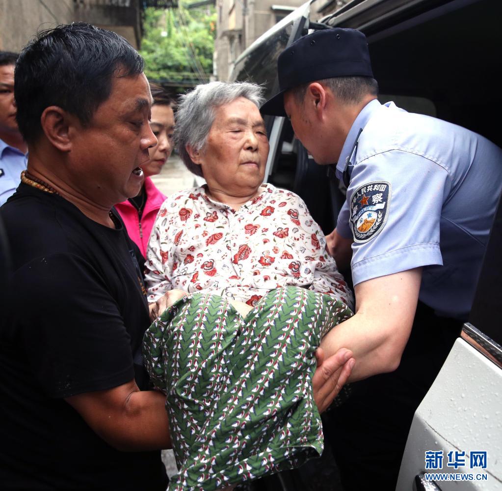 7月25日,在浙江省湖州市德清县乾元镇,民警在转移瘫痪在床的八旬老太徐亚模。