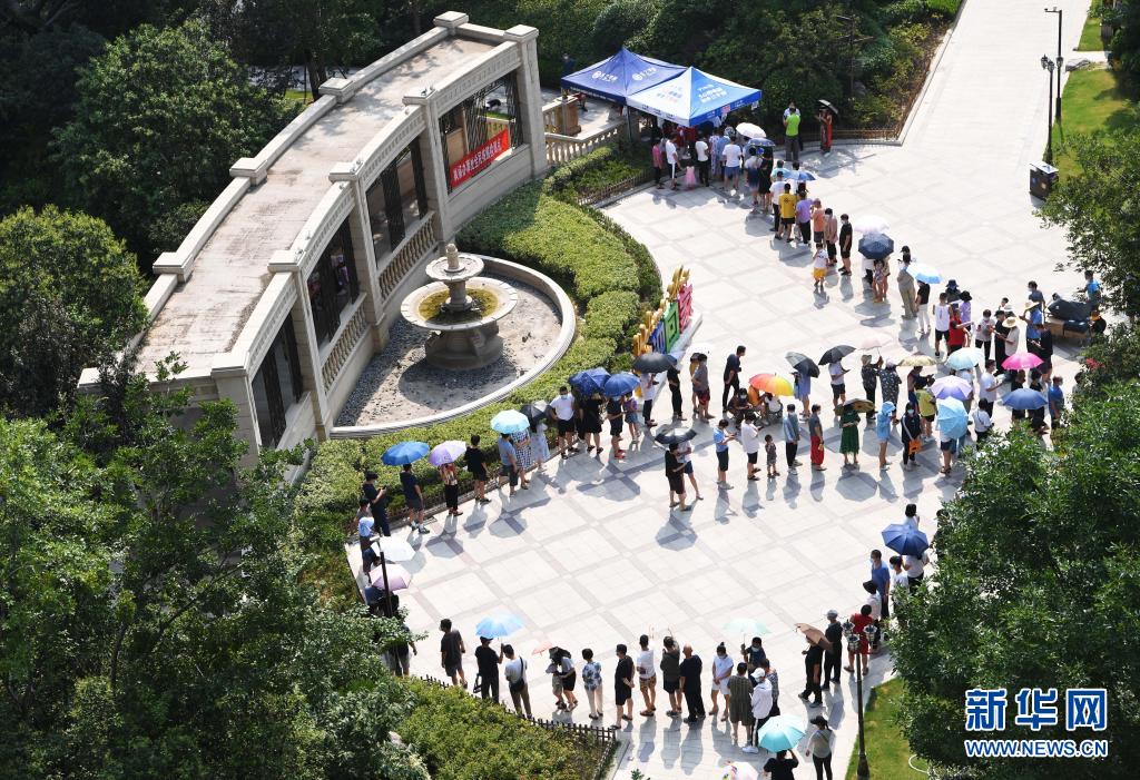 8月1日在郑州市高新区枫杨办事处誉园拍摄的核酸检测现场。