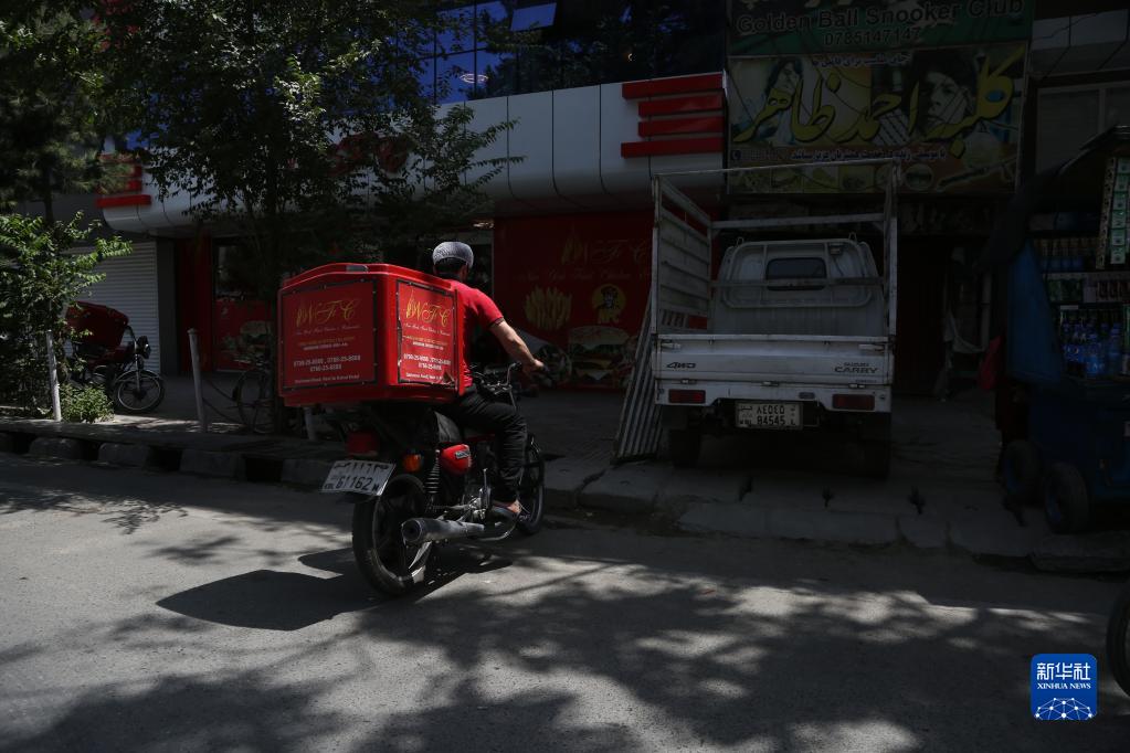 8月21日,外卖员在阿富汗喀布尔街头工作。新华社发