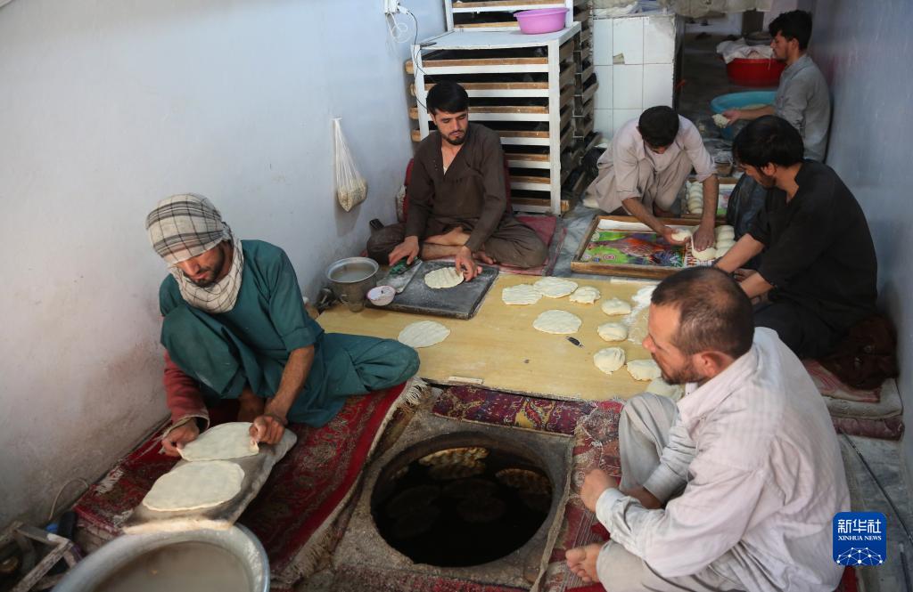 8月21日,人们在阿富汗喀布尔一家食品店内工作。新华社发