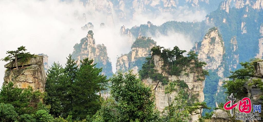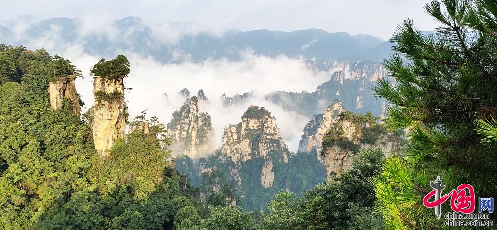 2021年8月22日,湖南张家界,初秋武陵源云雾涌动变幻万千。图片作者:邓道理/视觉中国