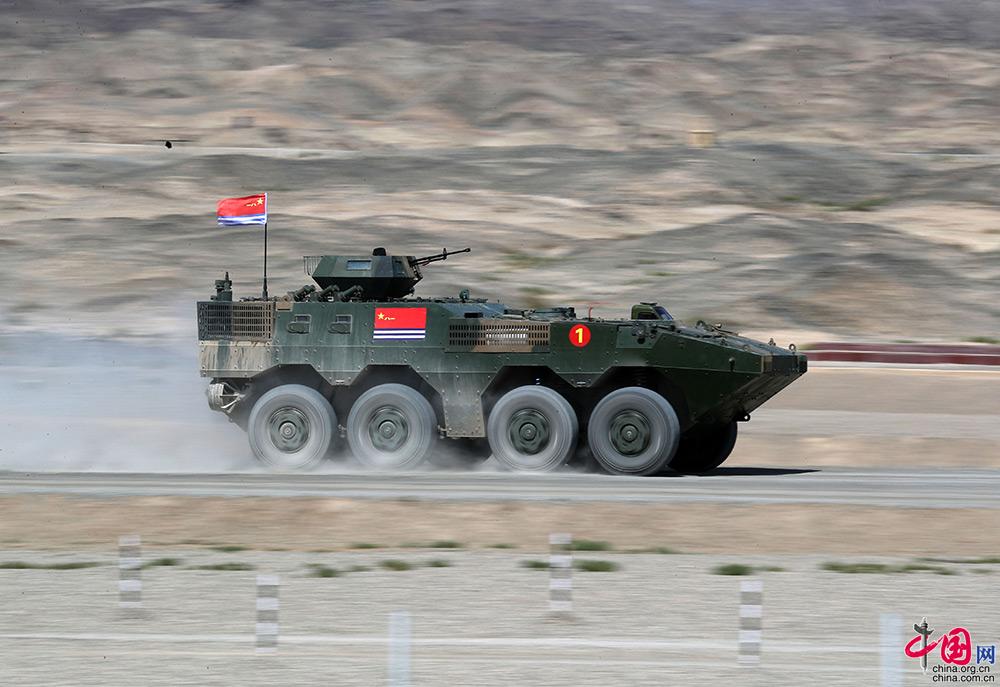 按照抽签顺序,在白俄罗斯和乌兹别克斯坦参赛队完成比赛后,中国参赛队陆军代表队第3个出发,分队指挥员少尉王明君、主射手中士李增仲、射手中士次仁翁秋、机枪手中士谭在富、驾驶员下士崔文科均来自陆军第83集团军某旅。
