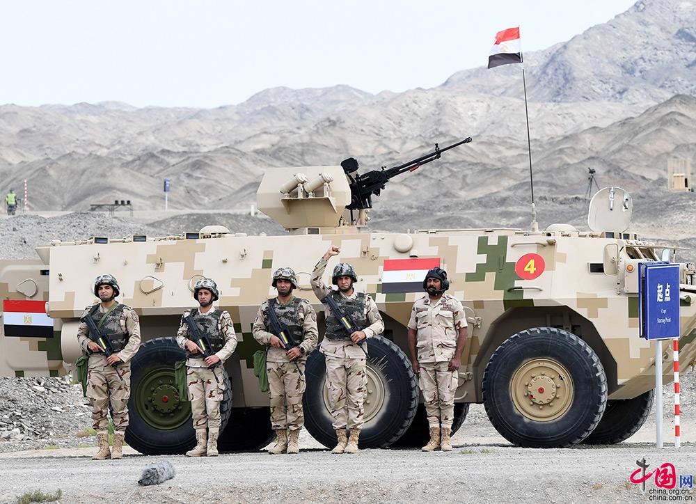 8月28日,“国际军事比赛-2021”中国库尔勒赛区“晴空”项目首场比赛多能赛在库尔勒开赛,埃及参赛车组准备出发。中国网发 张永进 摄