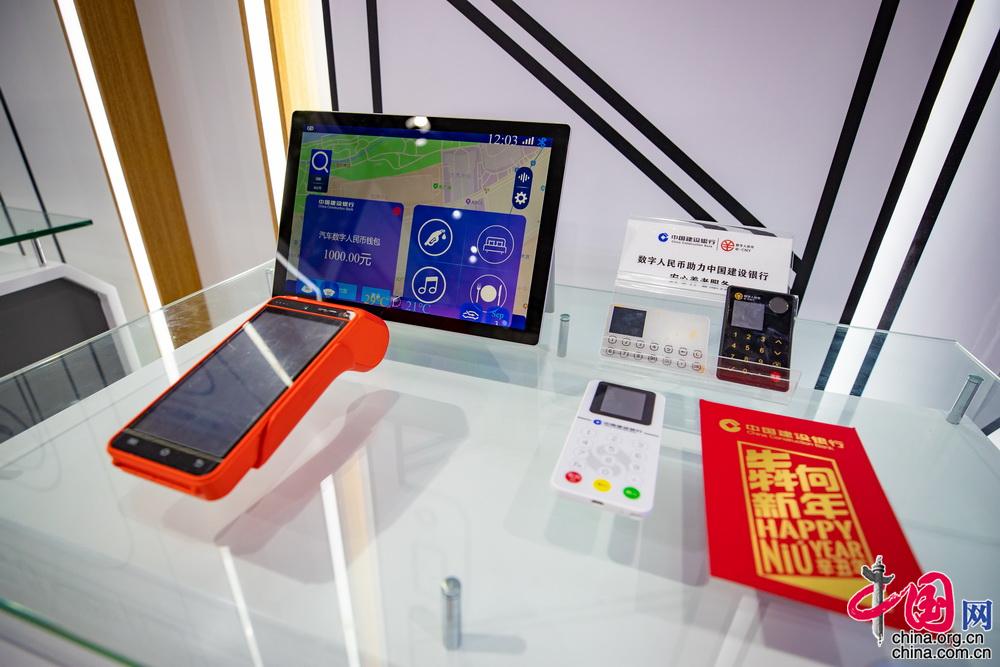 中国国际服务贸易交易会数字人民币专题展区建设银行展位展示的数字人民币应用场景。中国网记者 郑亮摄