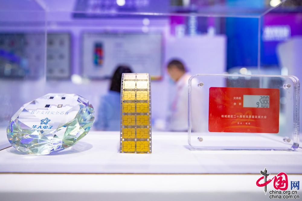 在中国国际服务贸易交易会数字人民币专题展区内展示的保证数字人民币安全支付等方面的相关产品。中国网记者郑亮摄