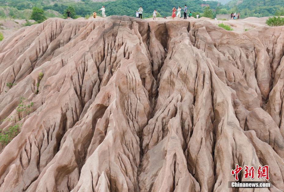 9月4日,航拍南京江宁区佘村的一处废弃采石场,这里经过长年雨水冲刷,形成了千奇百怪的沟壑,酷似“雅丹地貌”特征。从空中俯瞰,犹如大地“指纹”。中新社记者 泱波 摄