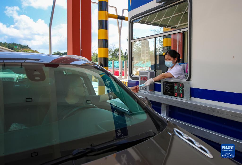 9月9日,车辆通过石(阡)玉(屏)高速公路天马收费站。