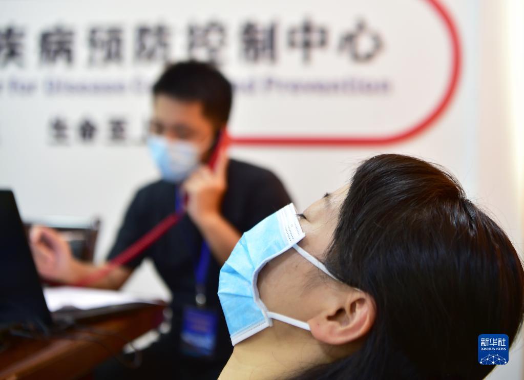 9月18日,一名加班工作十几个小时的流调员头靠在椅背上小憩。