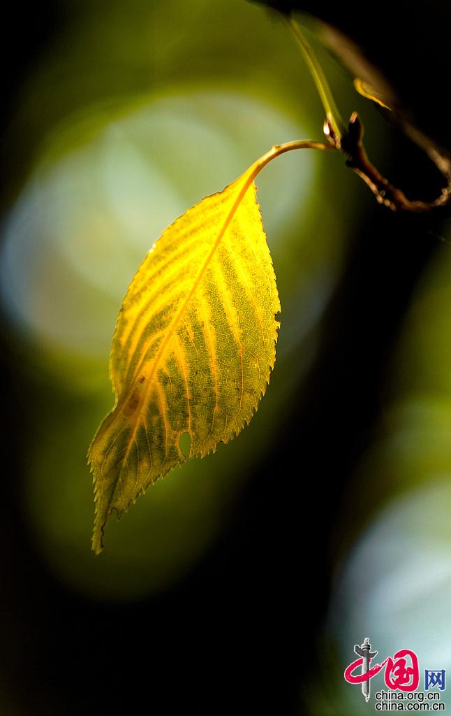 2021年9月22日,郑州,开始变黄的秋叶在阳光下透着迷人的金黄。图片作者:马健/视觉中国