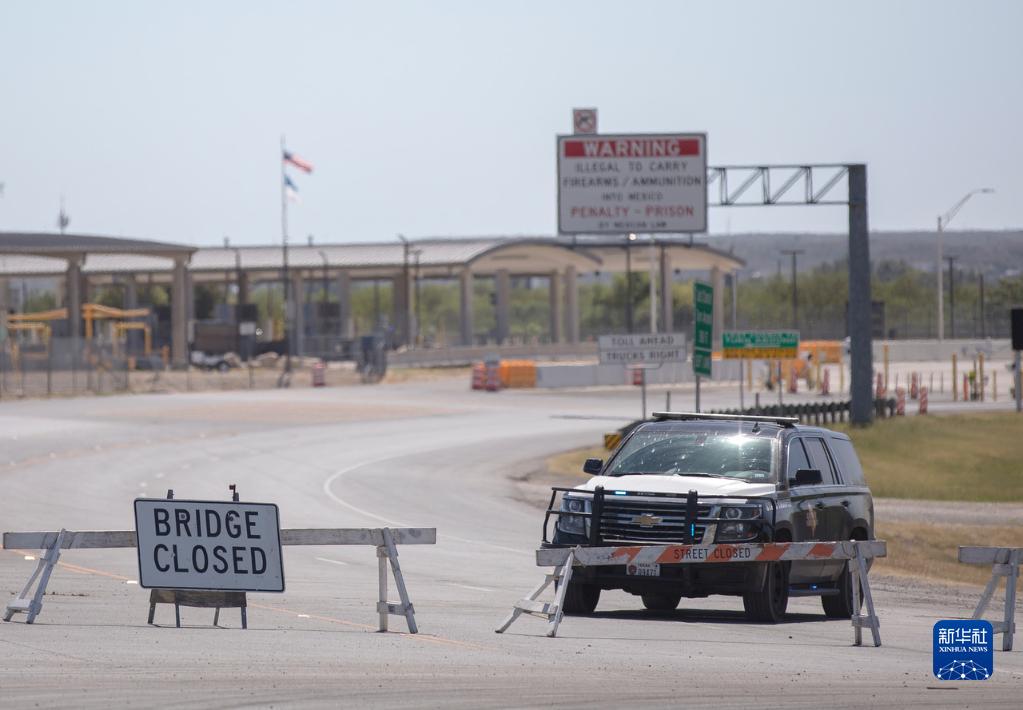 9月24日,在美国得克萨斯州德尔里奥,一辆得克萨斯州公共安全部门的巡逻车封锁了通往美墨边境的道路。