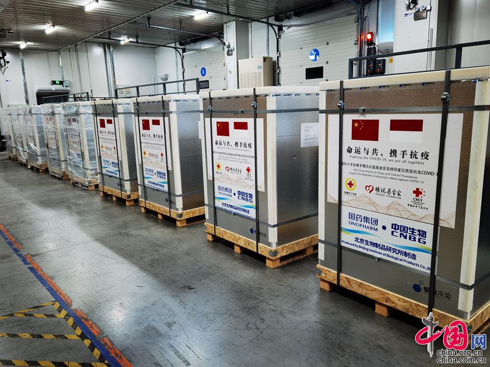 中国网讯 由中国红十字会向印度尼西亚援助的20万剂国药集团新冠疫苗于北京时间9月21日运抵。