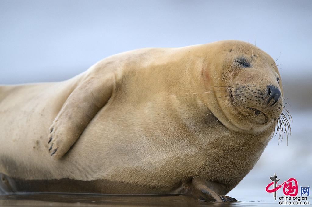 当地时间2011年9月13日,英国林肯郡海岸,小海豹在睡觉。图片作者:Barcroft/Barcroft Media via Getty Images/视觉中国