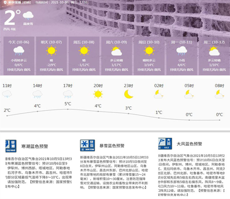图为霍尔果斯市10月6日当天天气截图。