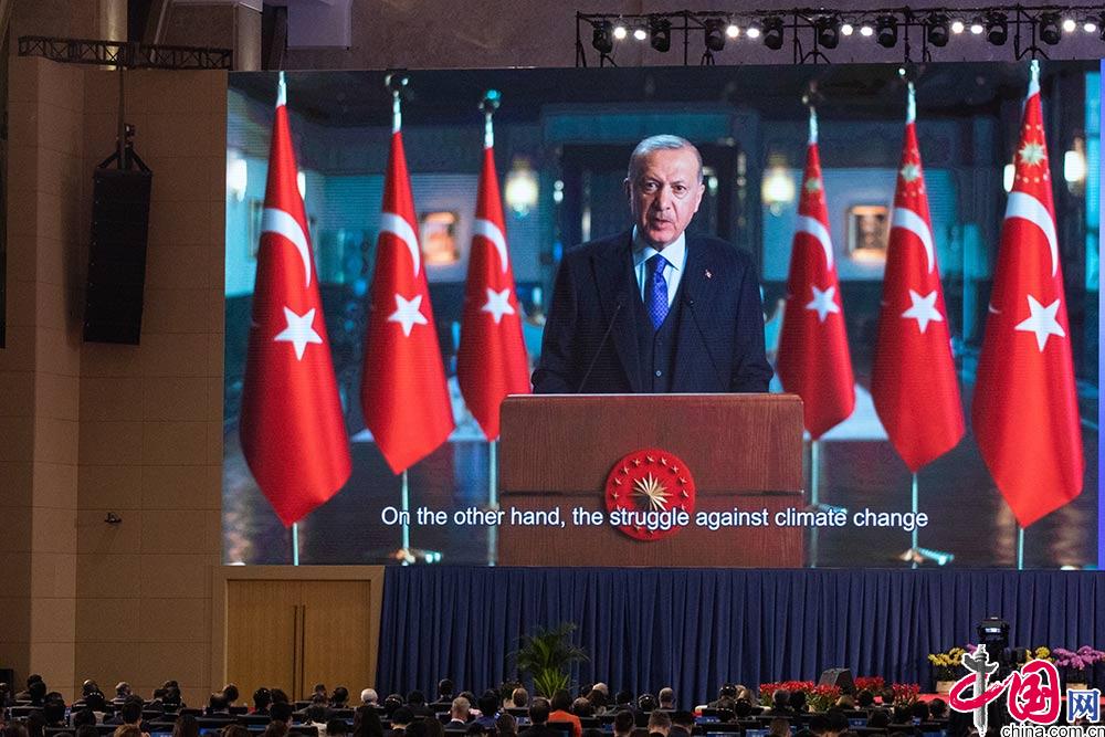 土耳其总统埃尔多安以视频方式出席《生物多样性公约》第十五次缔约方大会领导人峰会并发言。中国网 伦晓璇摄影