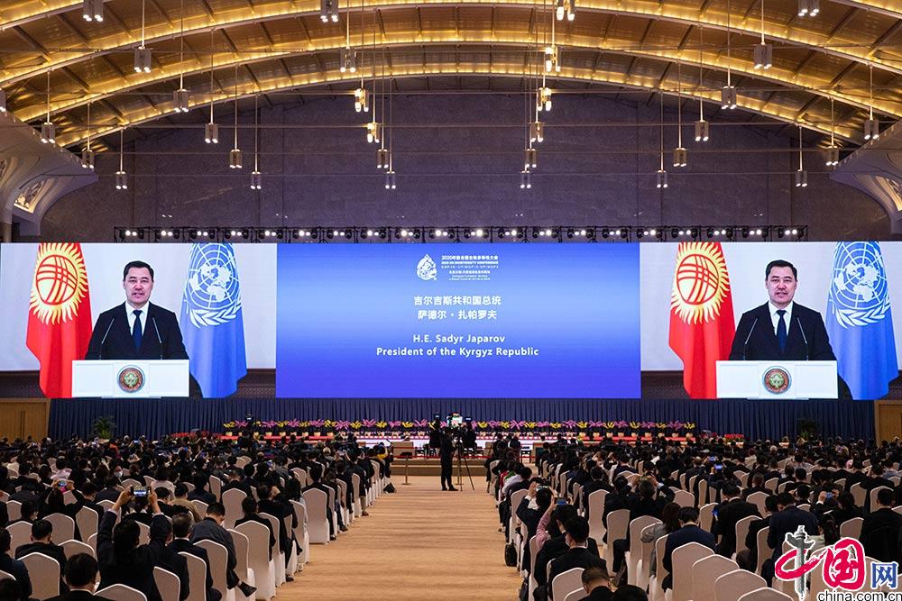 吉尔吉斯斯坦总统扎帕罗夫以视频方式出席《生物多样性公约》第十五次缔约方大会领导人峰会并发言。中国网 伦晓璇摄影