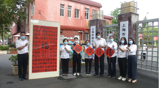 上海二十冶党群工作部部长王金涛,建筑安装工程公司党委副书记、纪委书记、工会主席高丽华,带着“百福图”来到上海市第三社会福利院送上企业的祝福。根据疫情防控要求,在敬老院大门口,福利院相关负责人接受了带有温度和美好祝福的“百福图”。