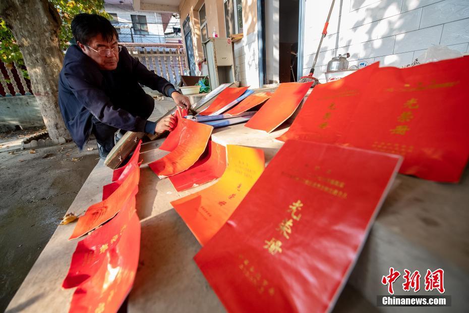 10月17日,山西省运城市新绛县,南关学校教职工晾晒被洪水浸泡的校园档案,准备开学复课。   中新社记者 韦亮 摄