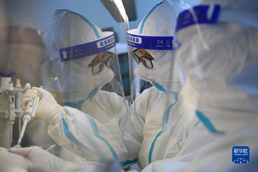 10月21日,在中国铁路兰州局集团疾病预防控制所核酸检测实验室,检验师李鹏鸣(左)在提取核酸。新华社记者 陈斌 摄
