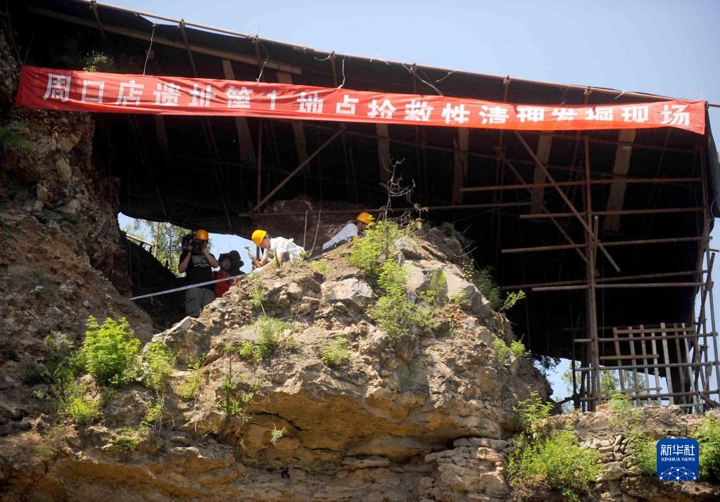 2009年6月24日,考古工作人员在北京周口店遗址第1地点进行抢救性清理发掘工作。