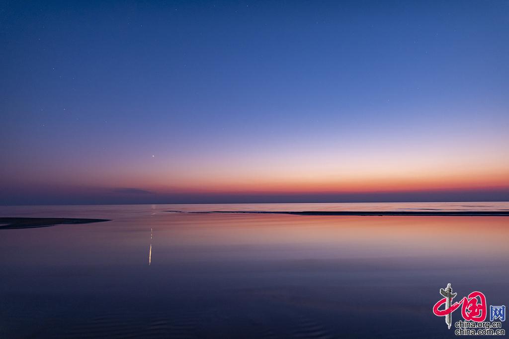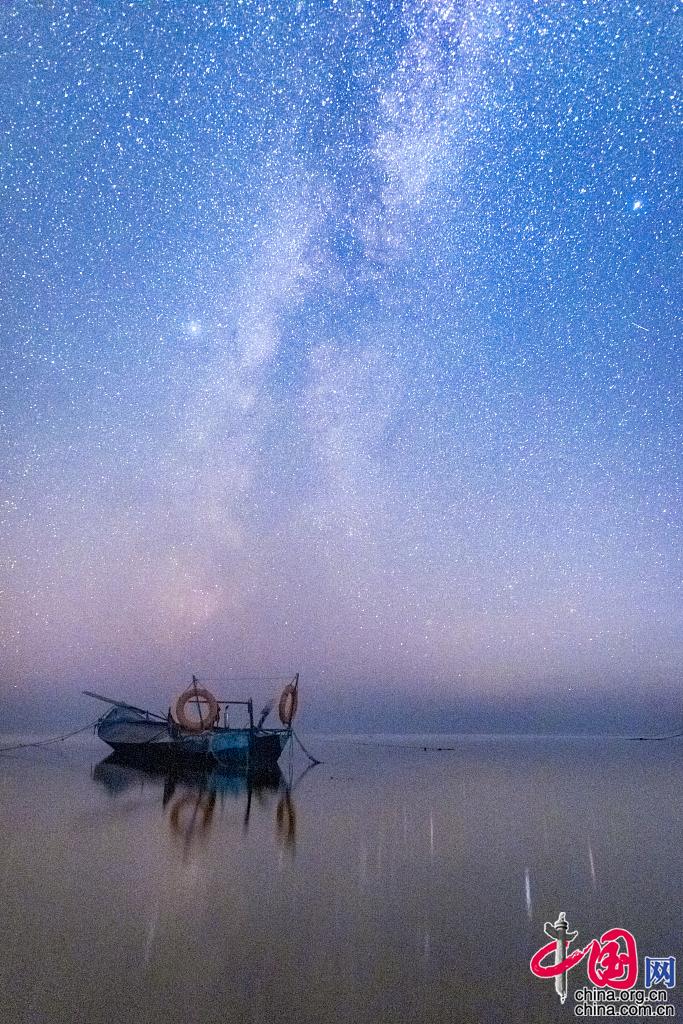 2021年11月2日,黑龙江鸡西,中俄界湖兴凯湖湖面平静空气通透,入暮后上演星空大片。图片作者:孙长山/视觉中国